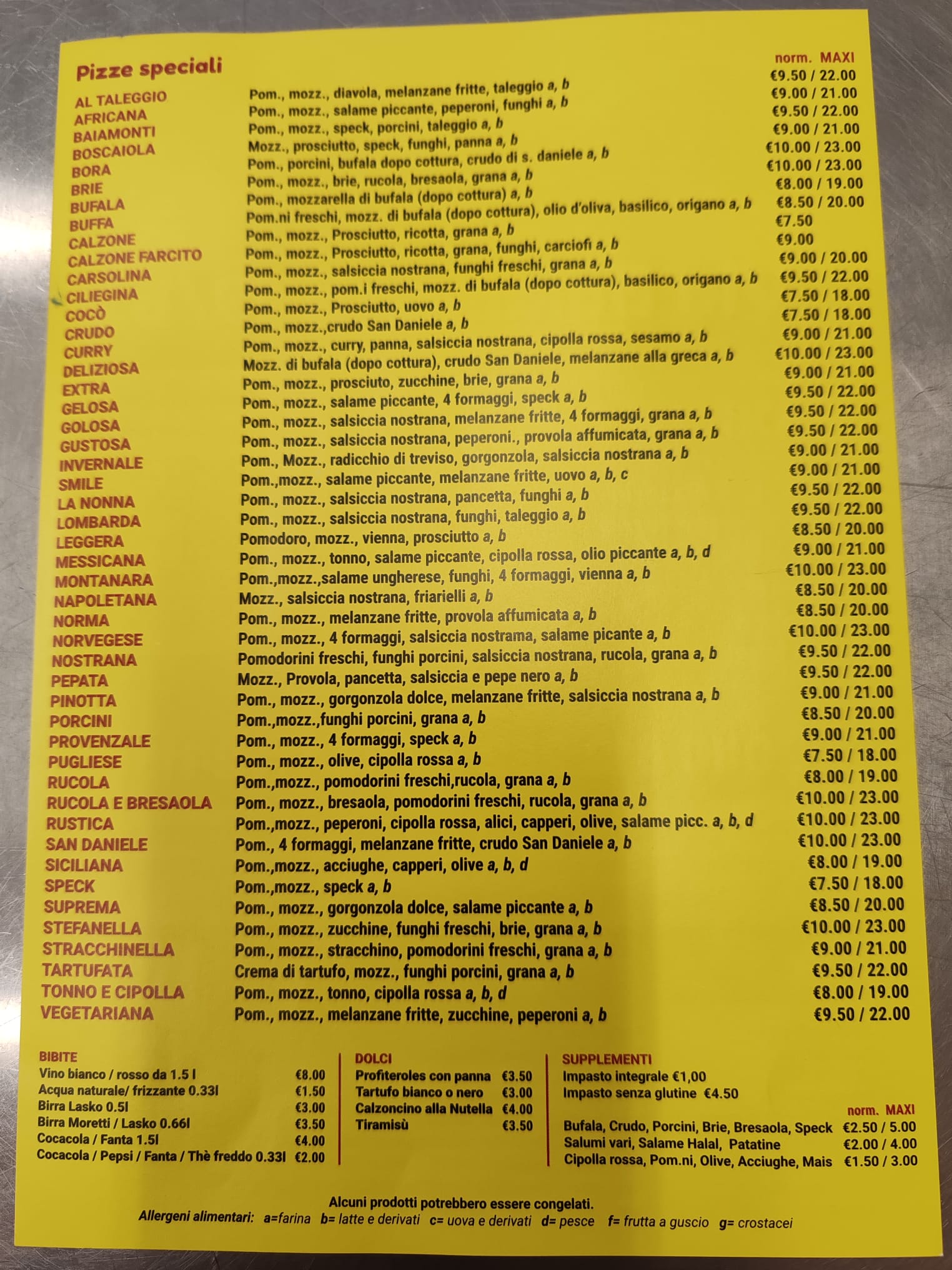 Cerchiamo sempre di offrire un'ampia scelta di pizze, partendo dalla tradizione ma sperimentando anche in base alla stagionalità del territorio.